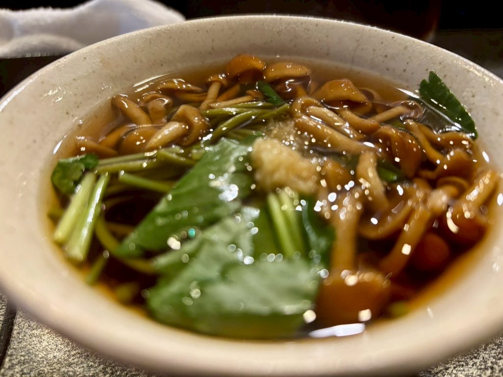 生姜と三つ葉の香りが口をサッパリさせ、ナメコのぬめり感とお出汁のがマッチして美味しい。