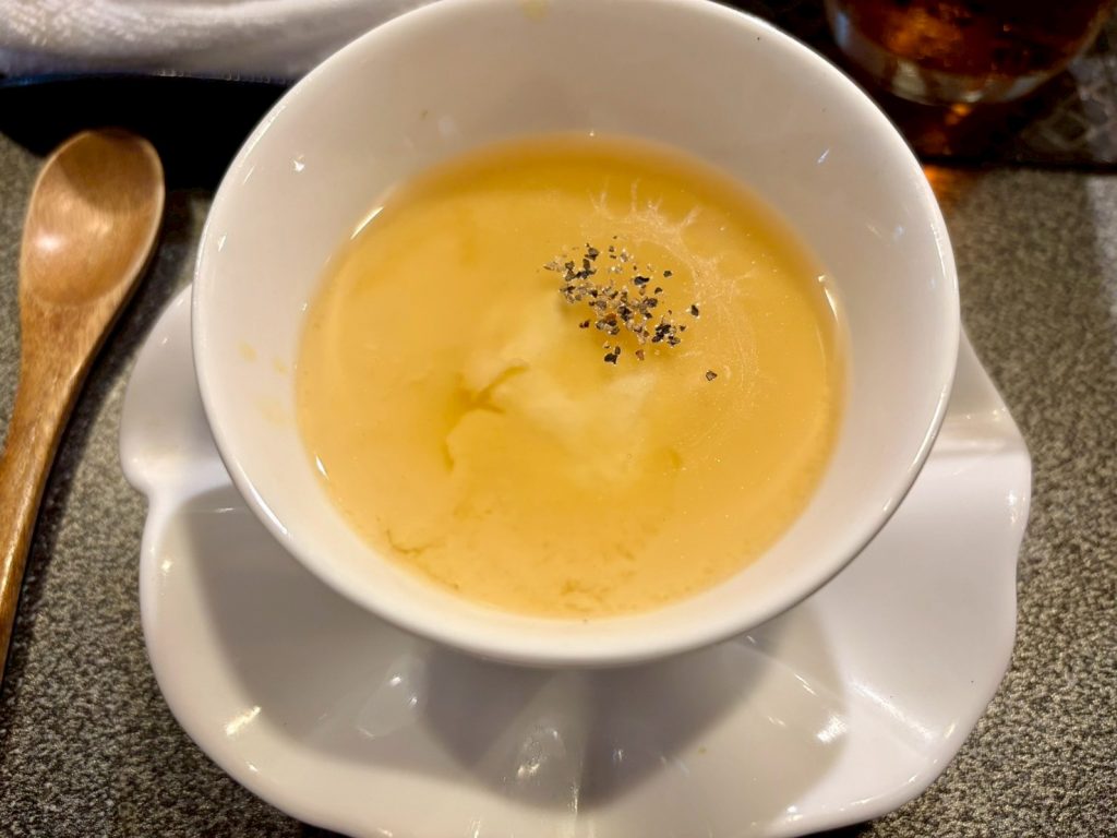 最初に「マスカルポーネと黒トリュフの茶碗蒸し」です。